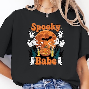 This scary Halloween t-shirt features a spooky ghost and its shadow demon alter-ego against a full moon. Printed on a comfortable Gildan 64000 Softstyle tee, this horror-themed shirt is perfect for fans of gothic illustration and dark fantasy art during the spooky season.