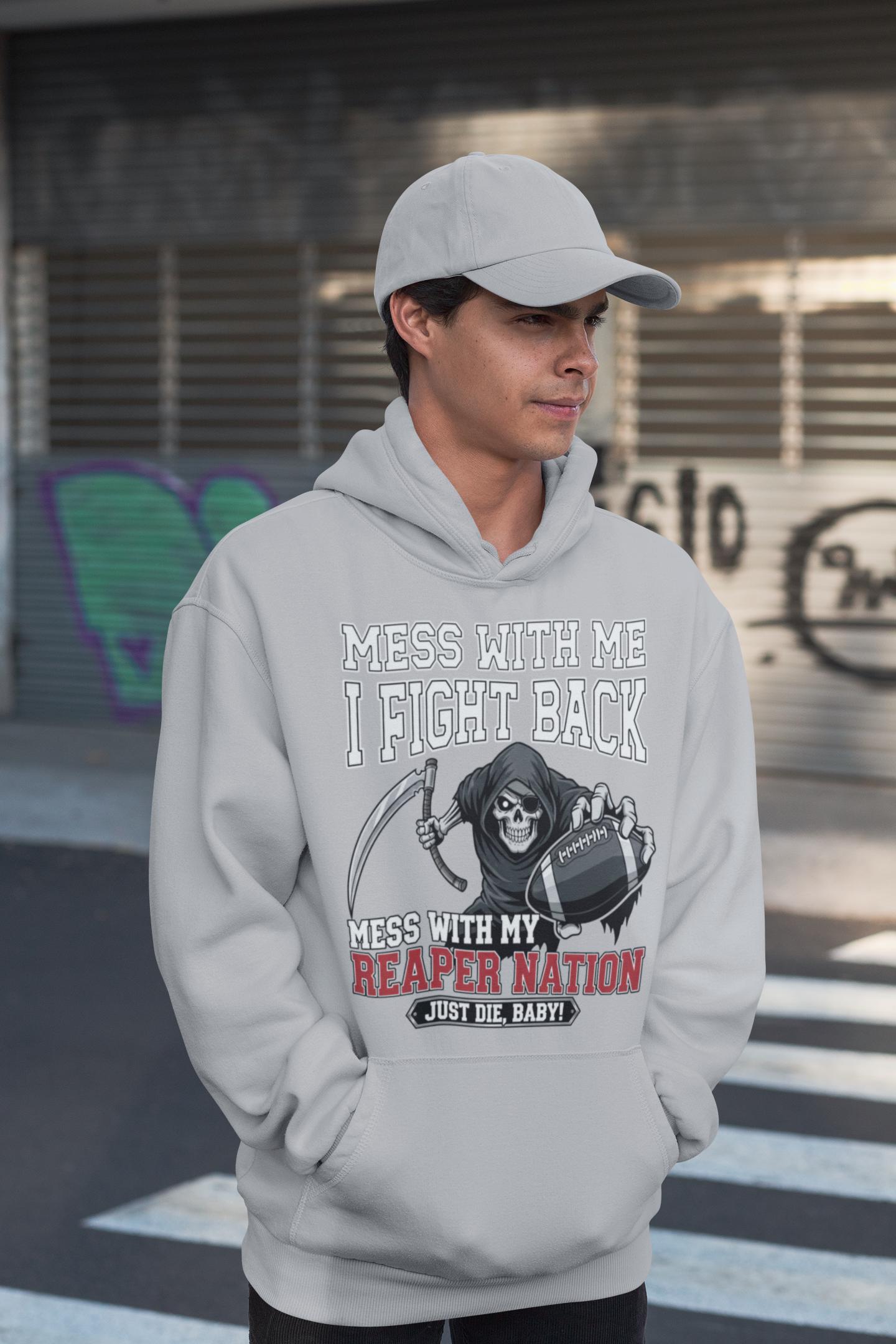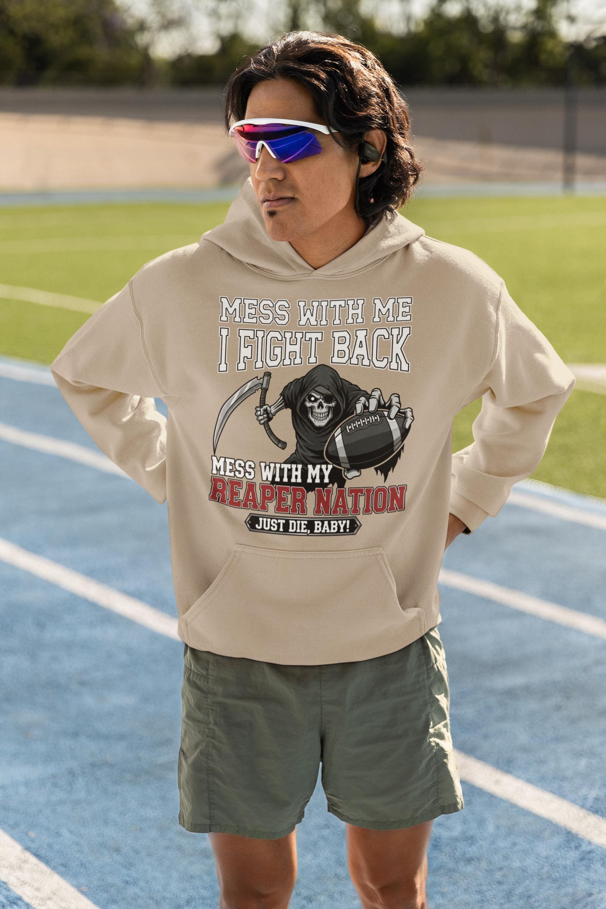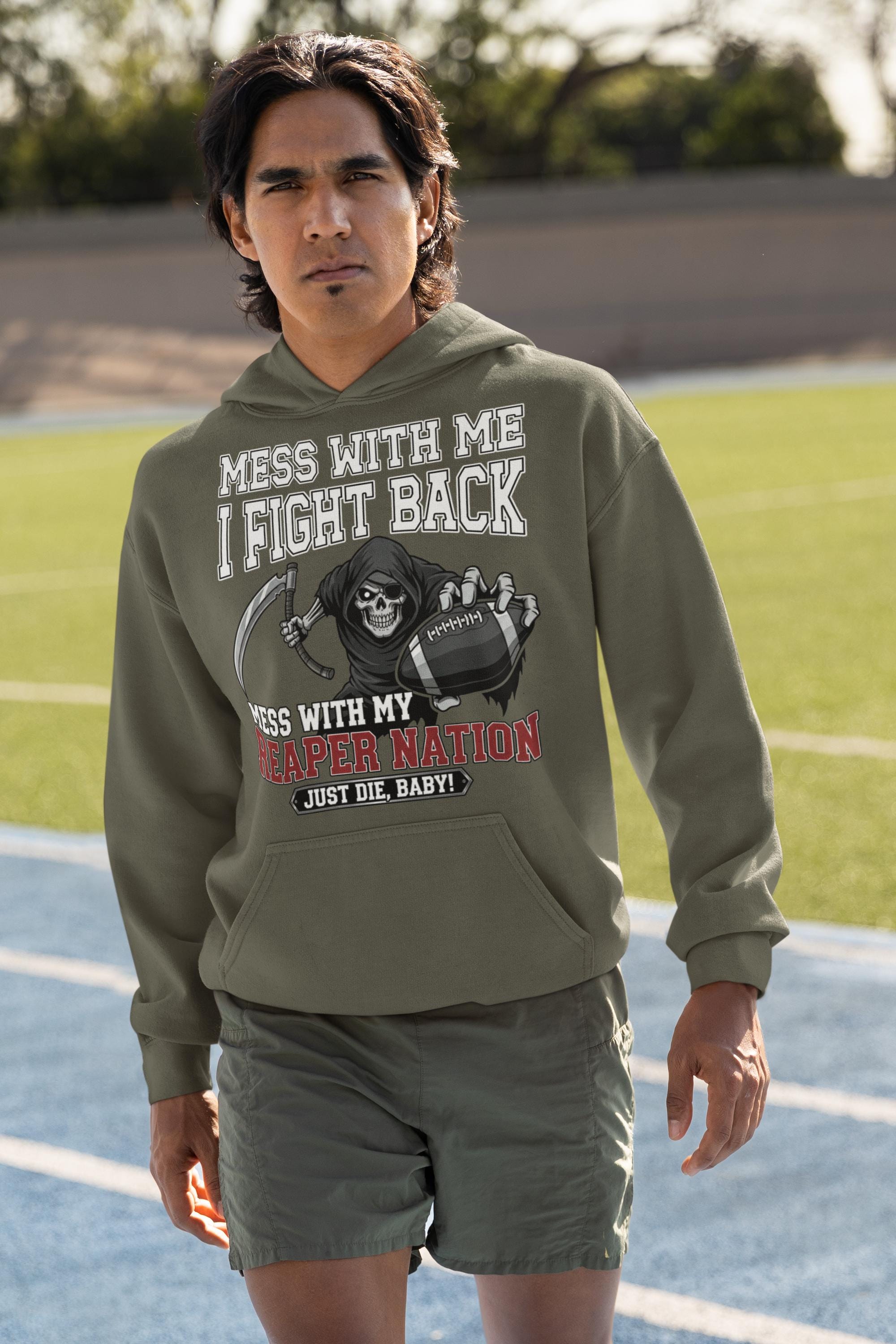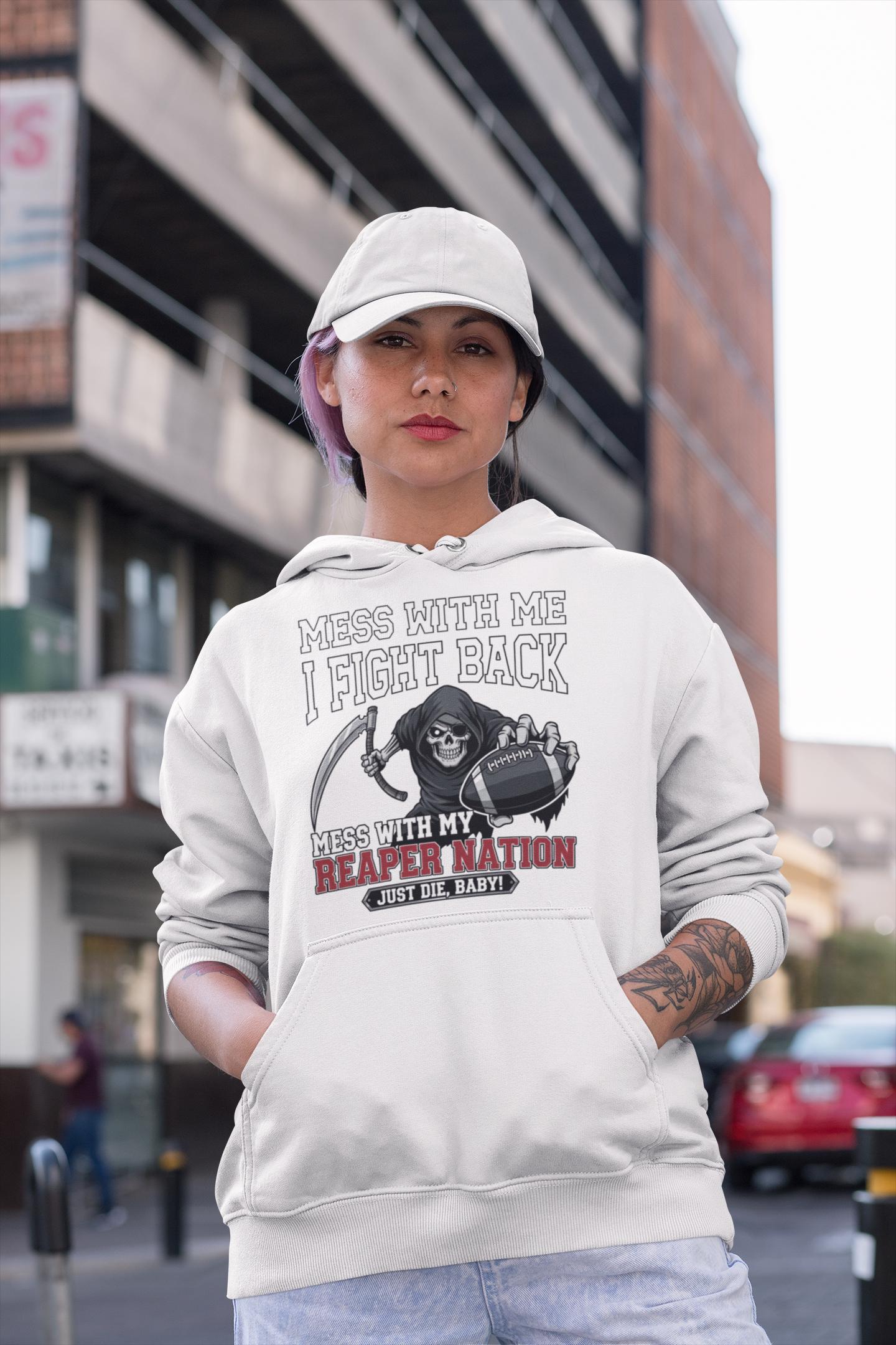 Show your tough fan spirit with this Reaper Nation Las Vegas American Football Hoodie! Featuring a bold grim reaper graphic, this soft cotton tee is perfect for game day. Get yours now!