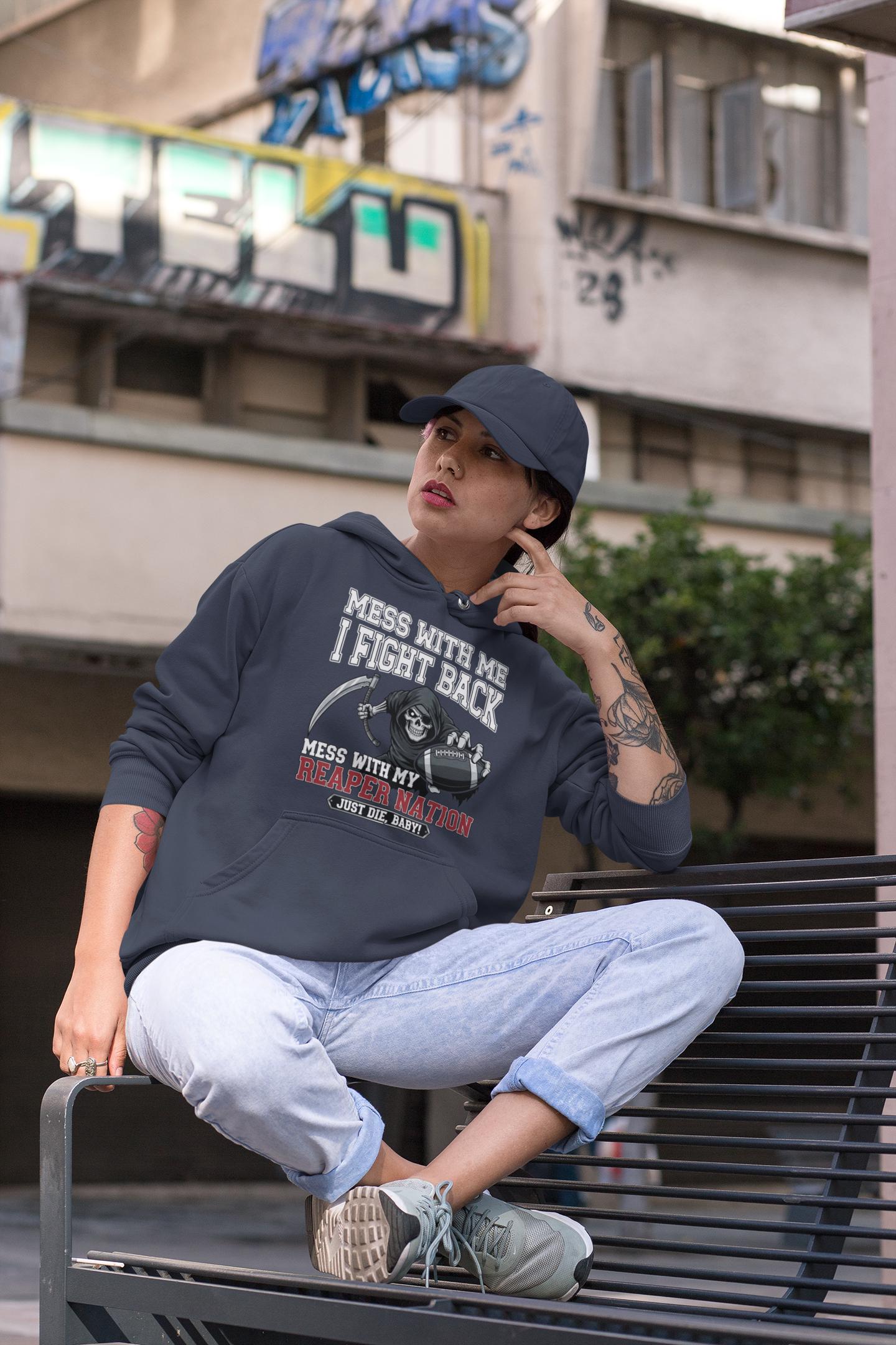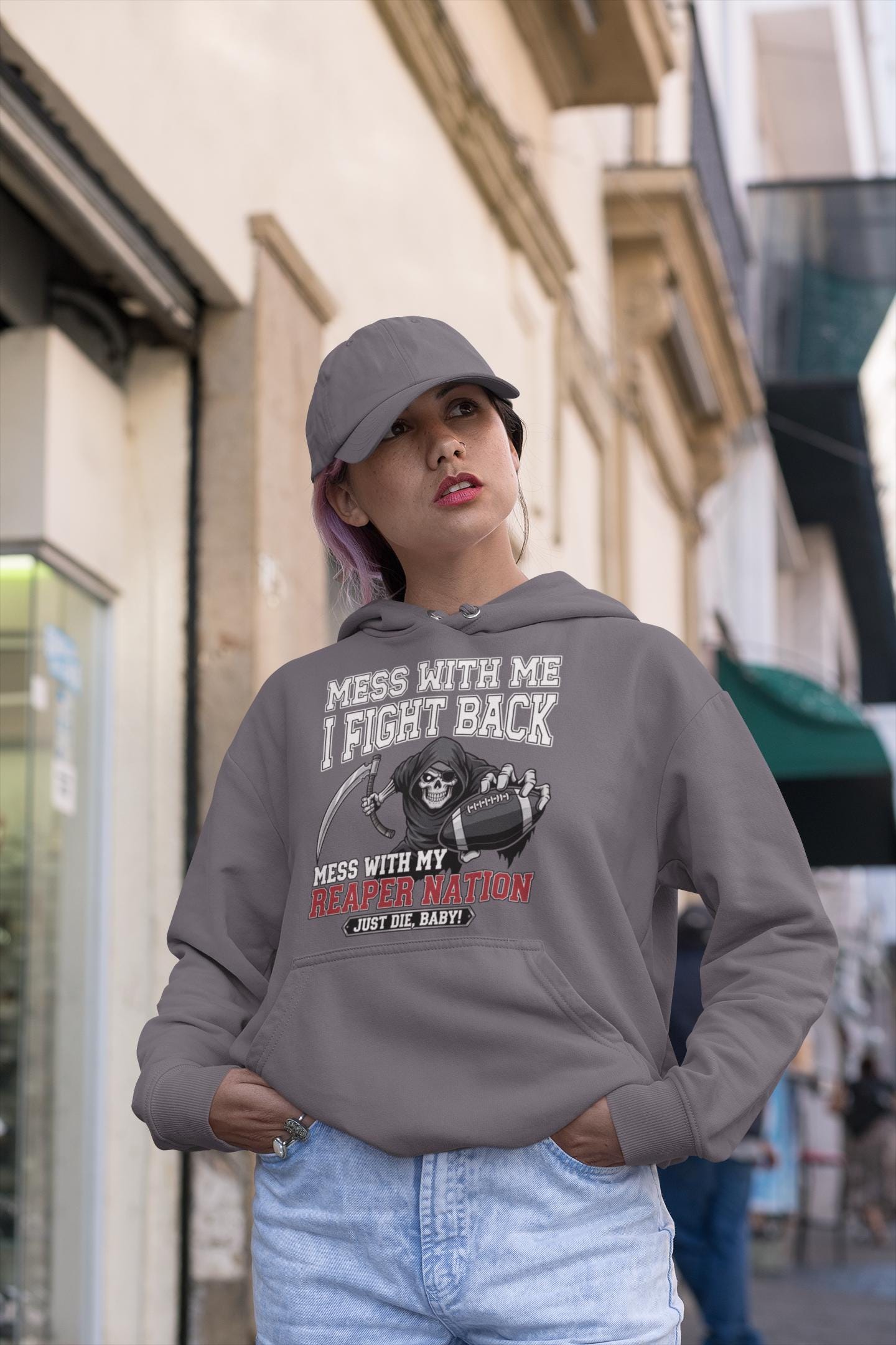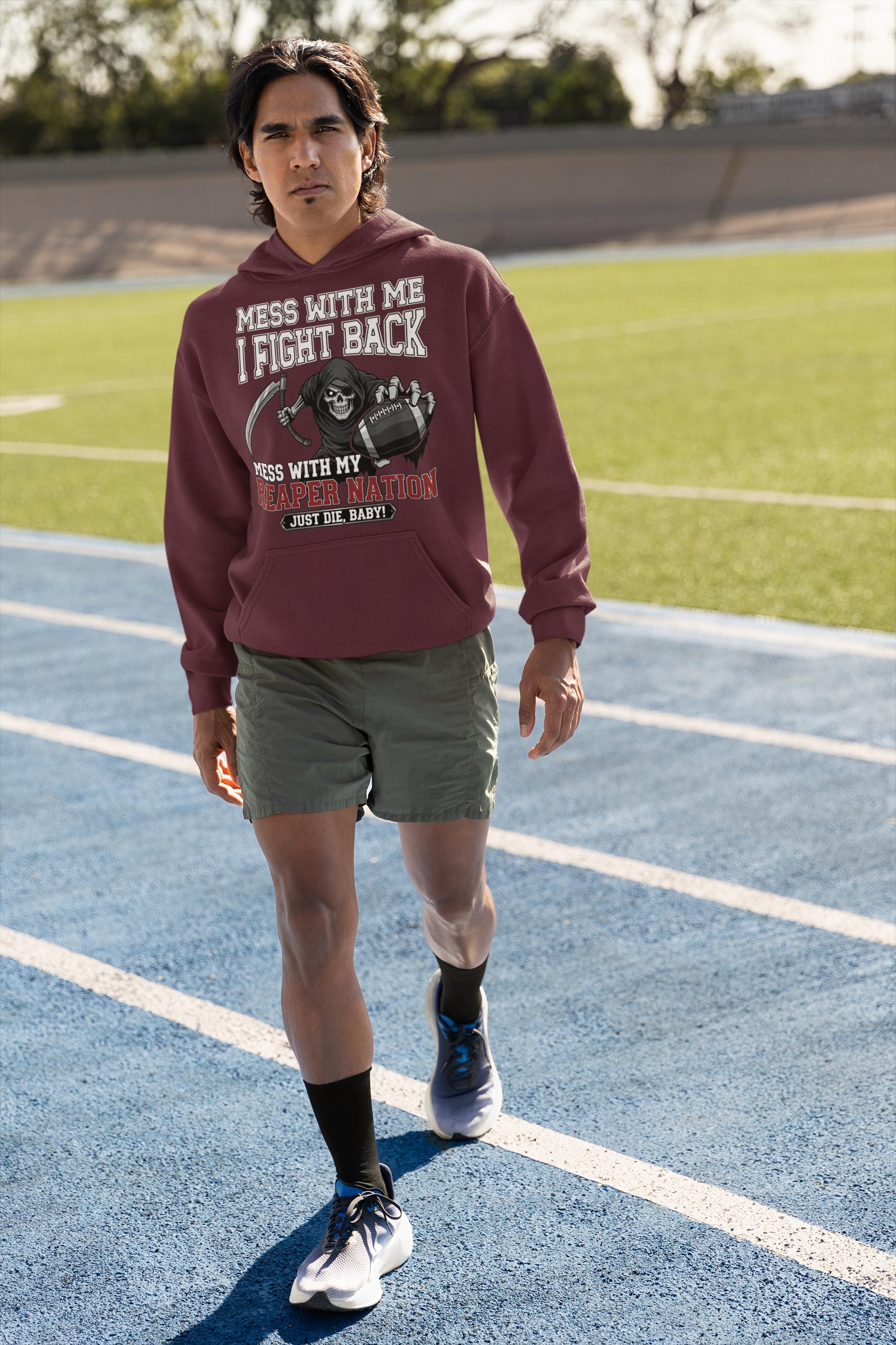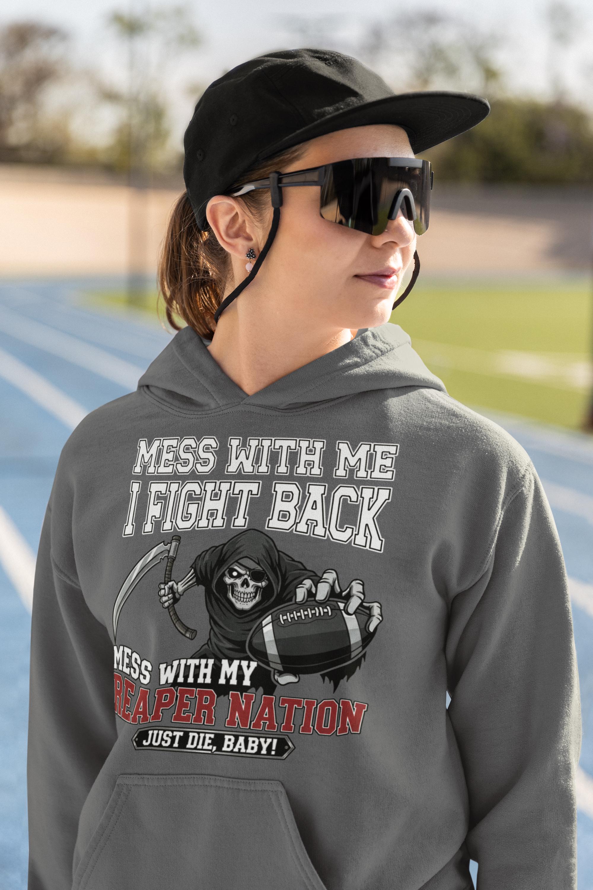 Show your tough fan spirit with this Reaper Nation Las Vegas American Football Hoodie! Featuring a bold grim reaper graphic, this soft cotton tee is perfect for game day. Get yours now!