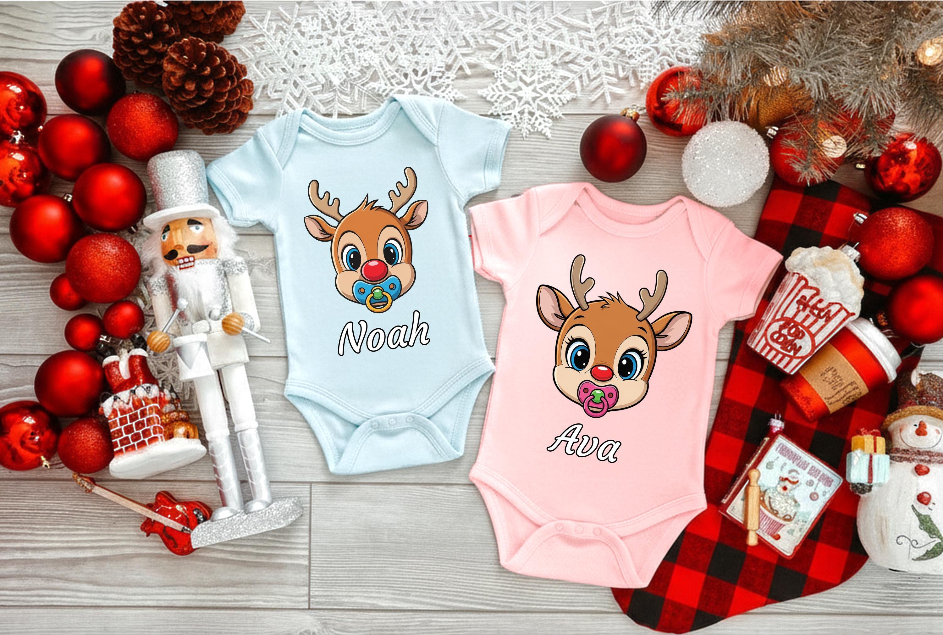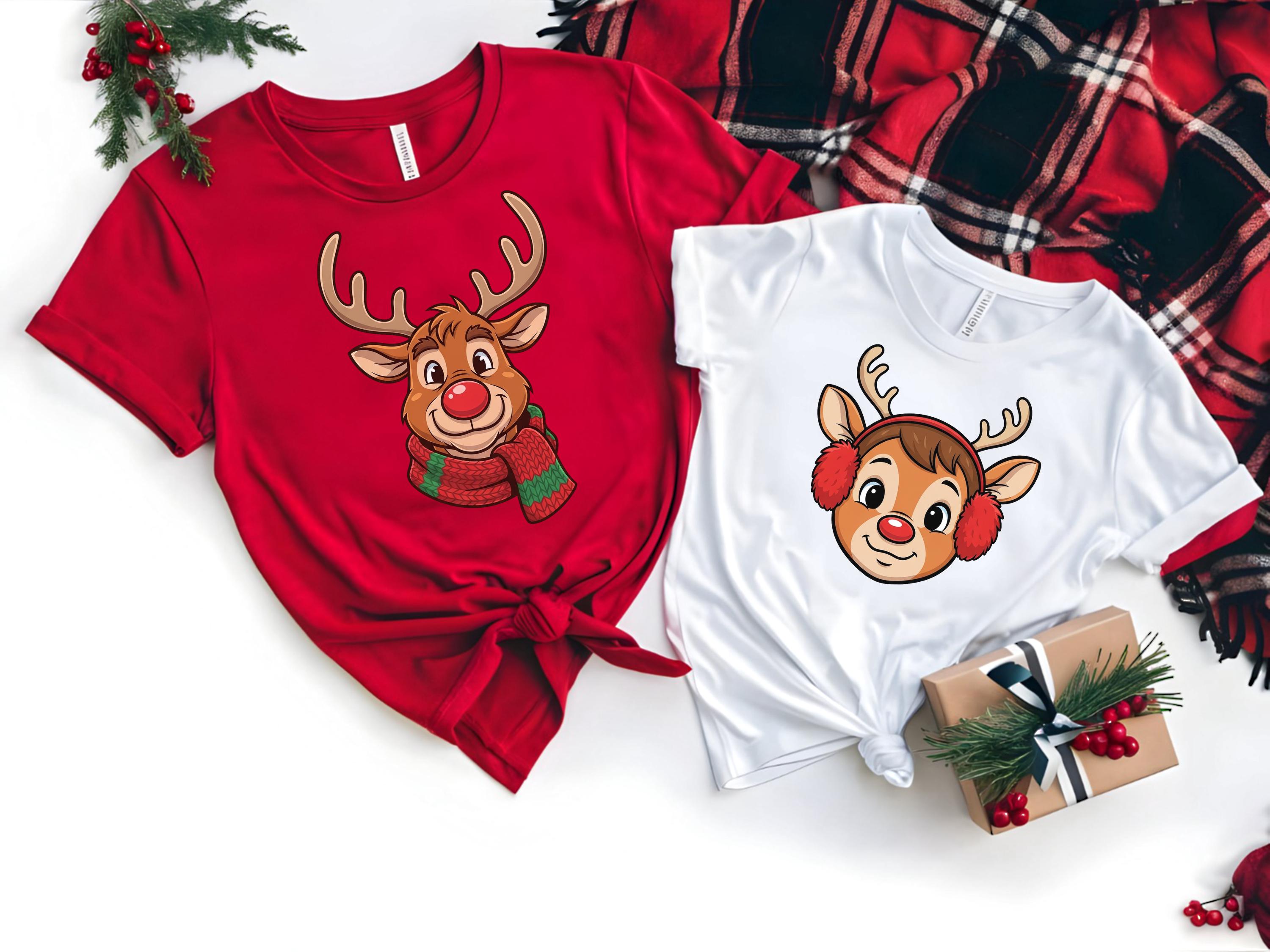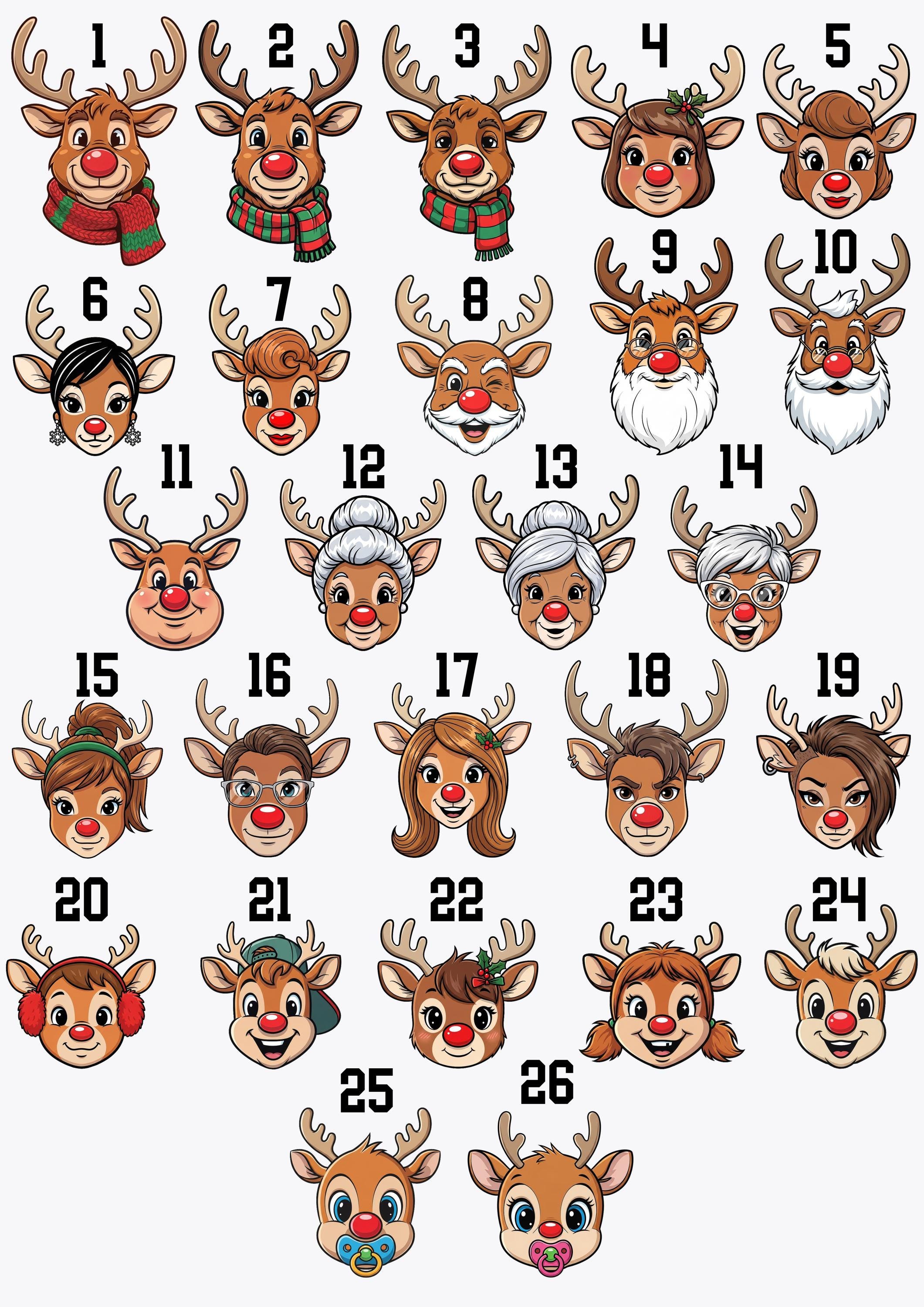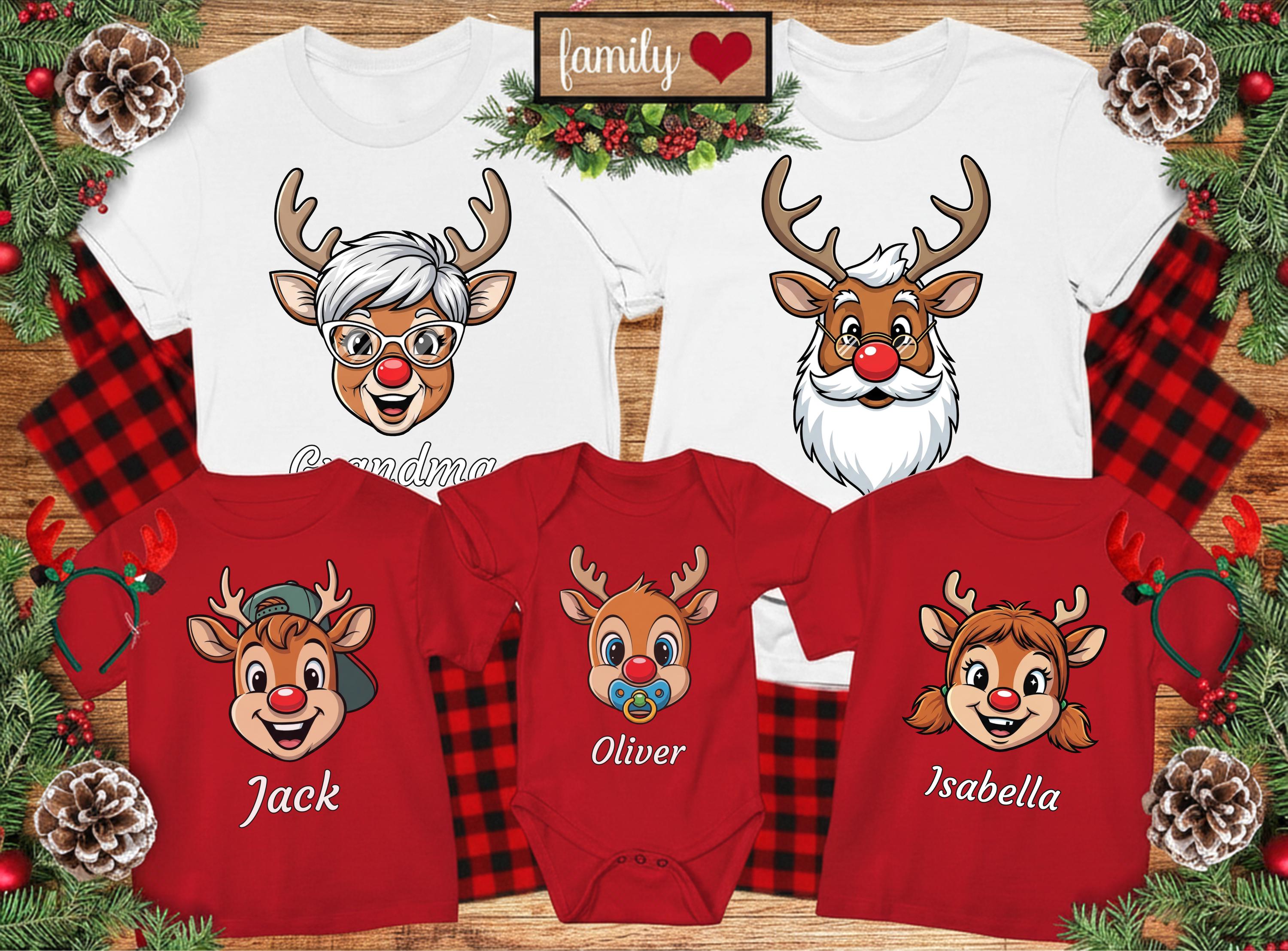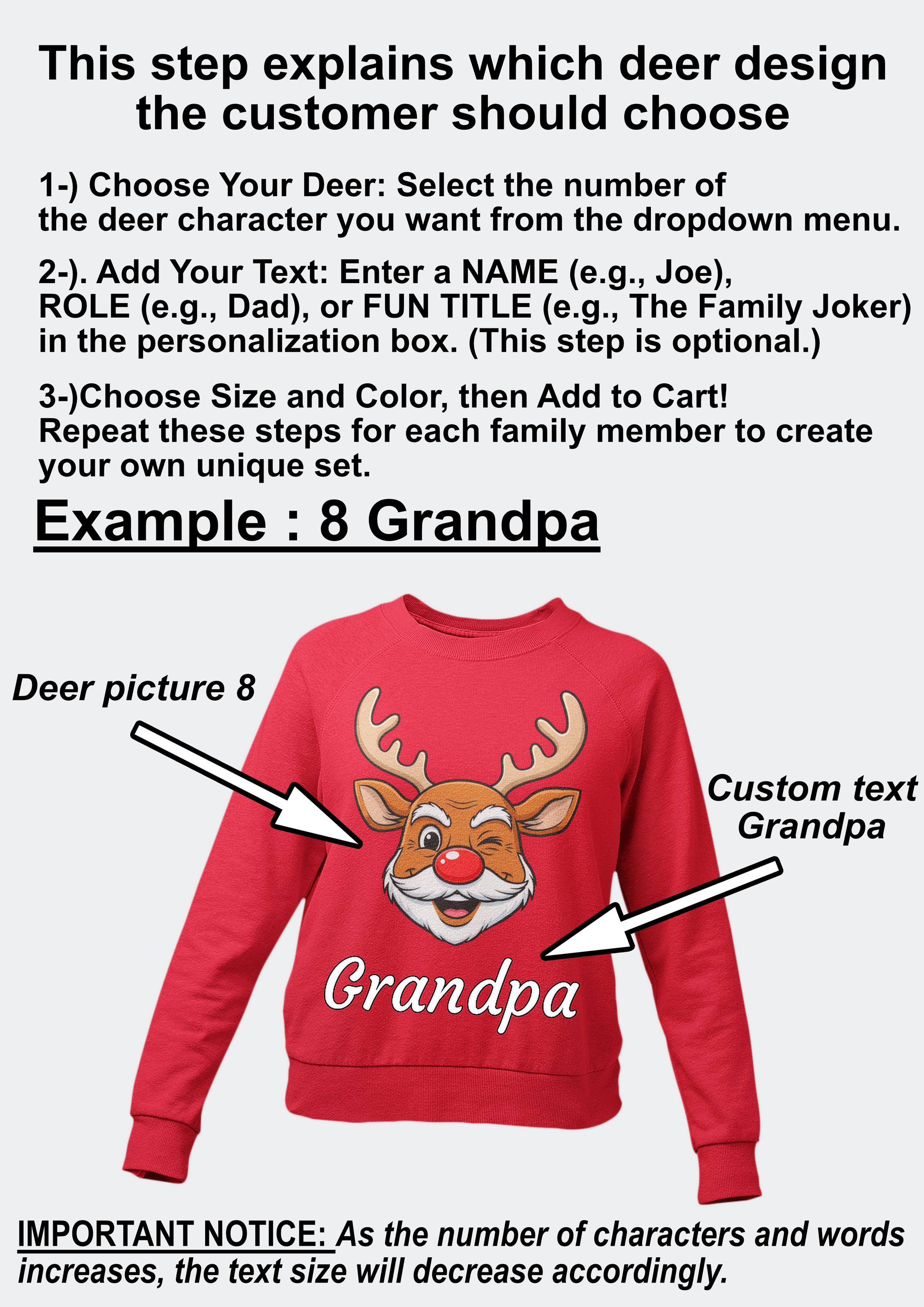 Shop our adorable Personalized Reindeer Family Christmas Sweatshirts, featuring 28 unique characters. This custom Gildan 18000 crewneck is the perfect matching pajama top for holiday photos. Available in a full range of sizes, including Gildan Youth (5000B, 18000B) and Rabbit Skins toddler/infant styles (3321, 4400).