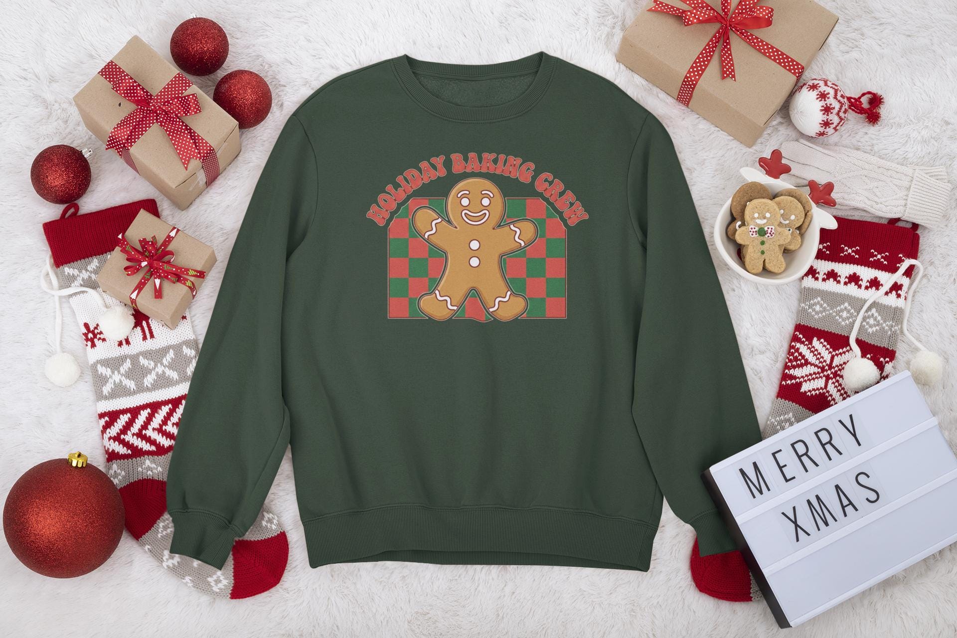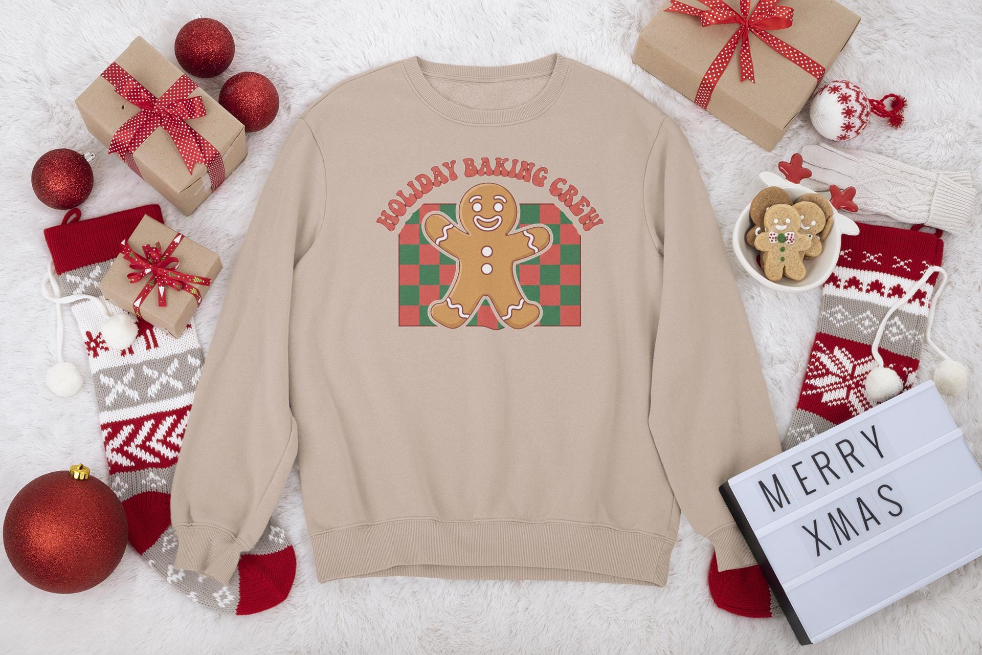 Discover your new favorite holiday tee with this Retro Gingerbread T-Shirt, featuring a fun "Holiday Baking Crew" graphic. This unisex Gildan 64000 Softstyle shirt is crafted with a vibrant, long-lasting DTG print, making it the perfect choice for festive family activities.