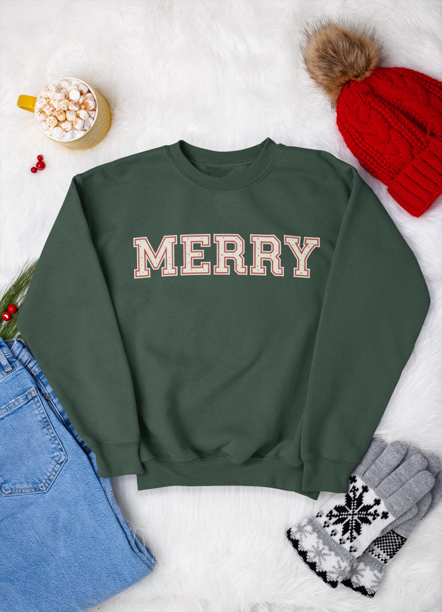 Embrace a touch of nostalgia with our Gildan 18000 'Merry and Bright' sweatshirt. This pullover features a unique retro marquee font that captures the charm of vintage Christmas signs. DTG printed for a vibrant, lasting finish, it's a stylish choice for any holiday occasion.