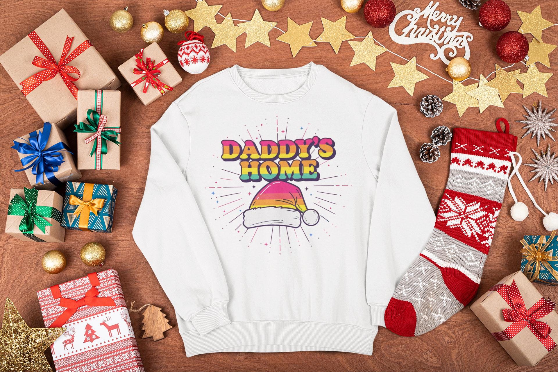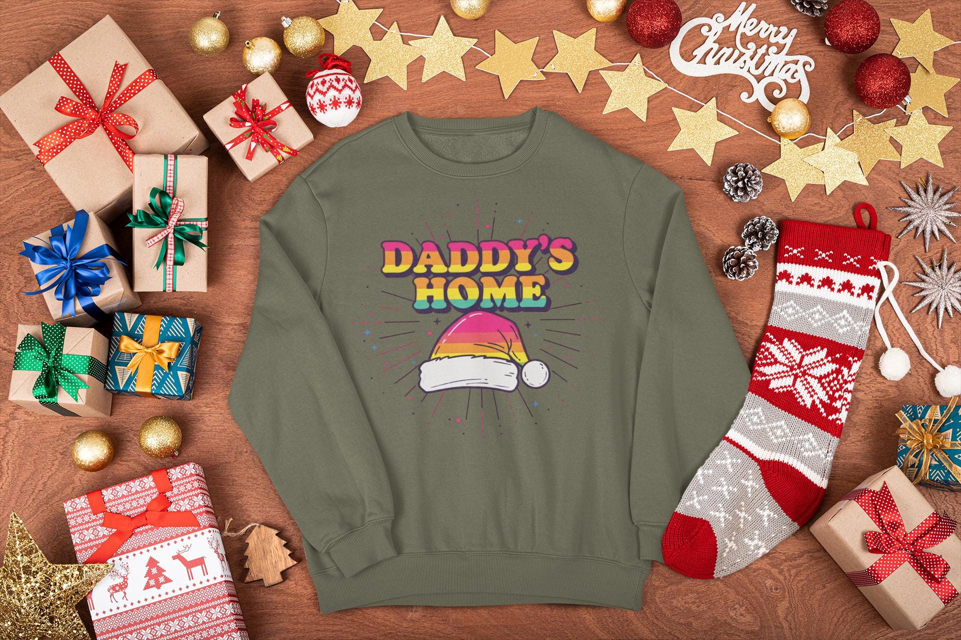 This piece isn't just a Christmas sweatshirt; it's a celebration. It combines the bold, playful, and confident spirit of "Daddy" culture with the nostalgic joy of a 70s Christmas. It's inclusive, fun, and unapologetically festive.